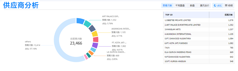 顺利获得供应商汇总分析,查看“沙发”在美国的供应商数量和他们所占市场份额,分析竞争环境和潜在的竞争者。顺利获得竞争对手的价格,评估该市场中同类商品的定价水平,从而制定有竞争力的价格策略。